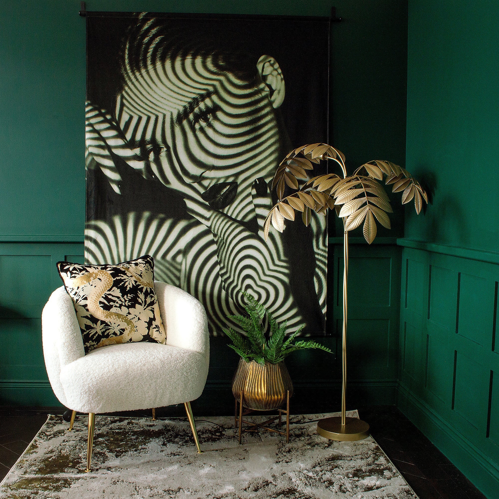 Made from a soft velvet polyester, with a beautiful monochrome and green hue.