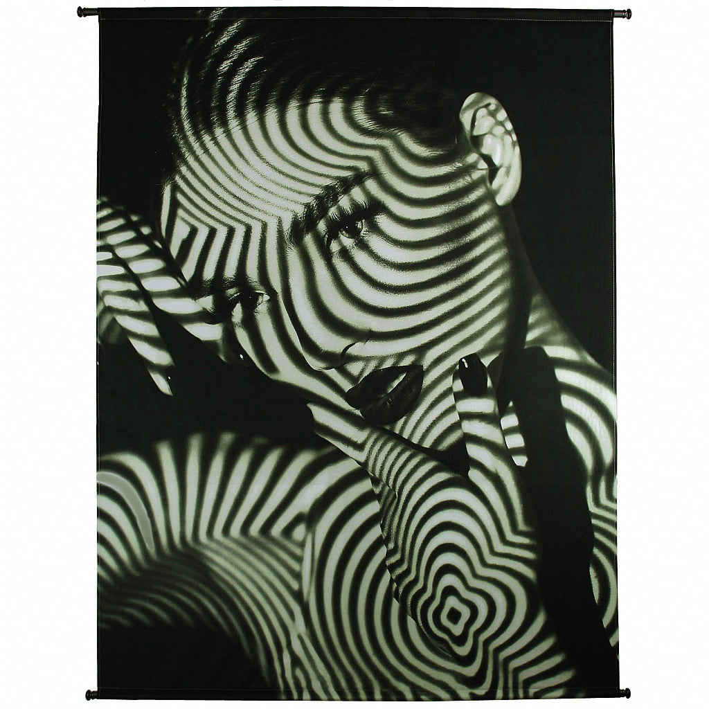 What is more dramatic than our Monochrome Hypnotic Woman Velvet Wall Hanging. A fabulous way to create an impressive wall display for a fraction of the cost and effort of a wallpaper mural. Eye catching and theatrical for those of you who love a statement wall. Perfect in a monochrome scheme, or make a backdrop for jewel colours in a more vibrant setting.